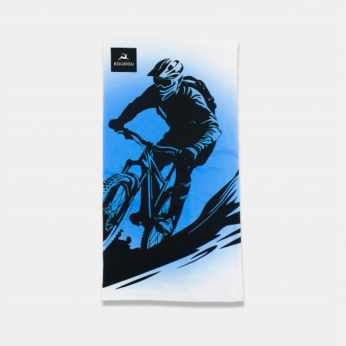 Tour de cou technique en polyester thermo régulant sublimé avec un motif VTT sur fond bleu. L'accessoire idéal pour vos sorties sportives. Vous pourrez le porter autour de votre cou, en bandeau, en cache nez, en cagoule et encore bien d'autres possibilités.