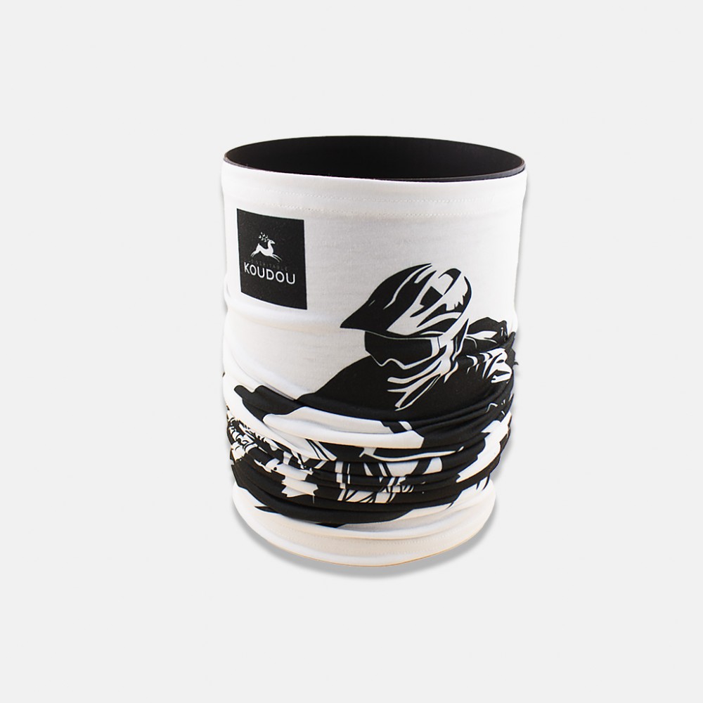 Tour de cou technique en polyester thermo régulant sublimé avec un motif VTT sur fond blanc. L'accessoire idéal pour vos sorties sportives. Vous pourrez le porter autour de votre cou, en bandeau, en cache nez, en cagoule et encore bien d'autres possibilités.