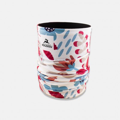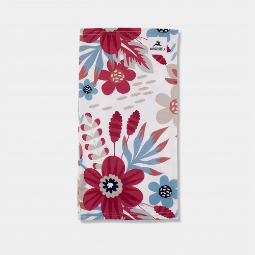Tour de cou technique en polyester thermo régulant sublimé avec un motif floral bordeaux et bleu L'accessoire idéal pour vos sorties sportives printanières. Vous pourrez le porter autour de votre cou, en bandeau, en cache nez, en cagoule et encore bien d'autres possibilités.