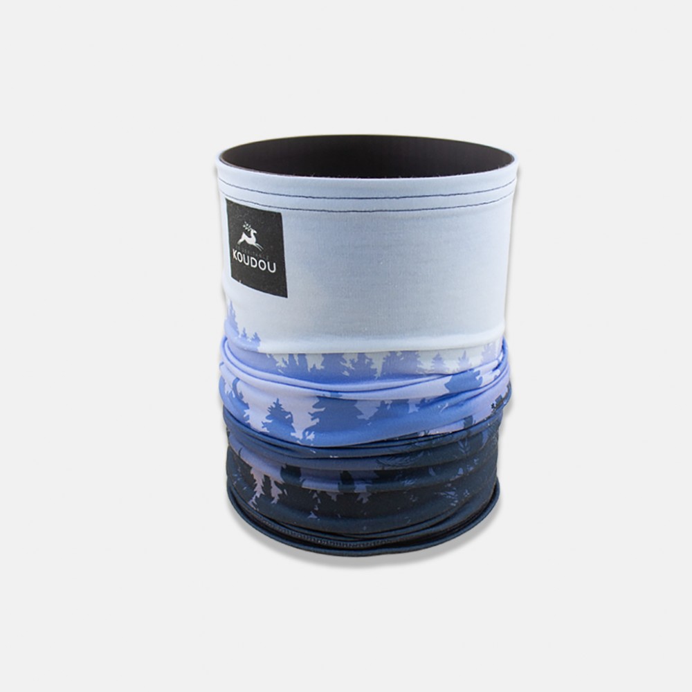 Tour de cou technique en polyester thermo régulant sublimé avec un motif foret bleue. L'accessoire idéal pour vos activités sportives. Vous pourrez le porter autour de votre cou, en bandeau, en cache nez, en cagoule et encore bien d'autres possibilités.