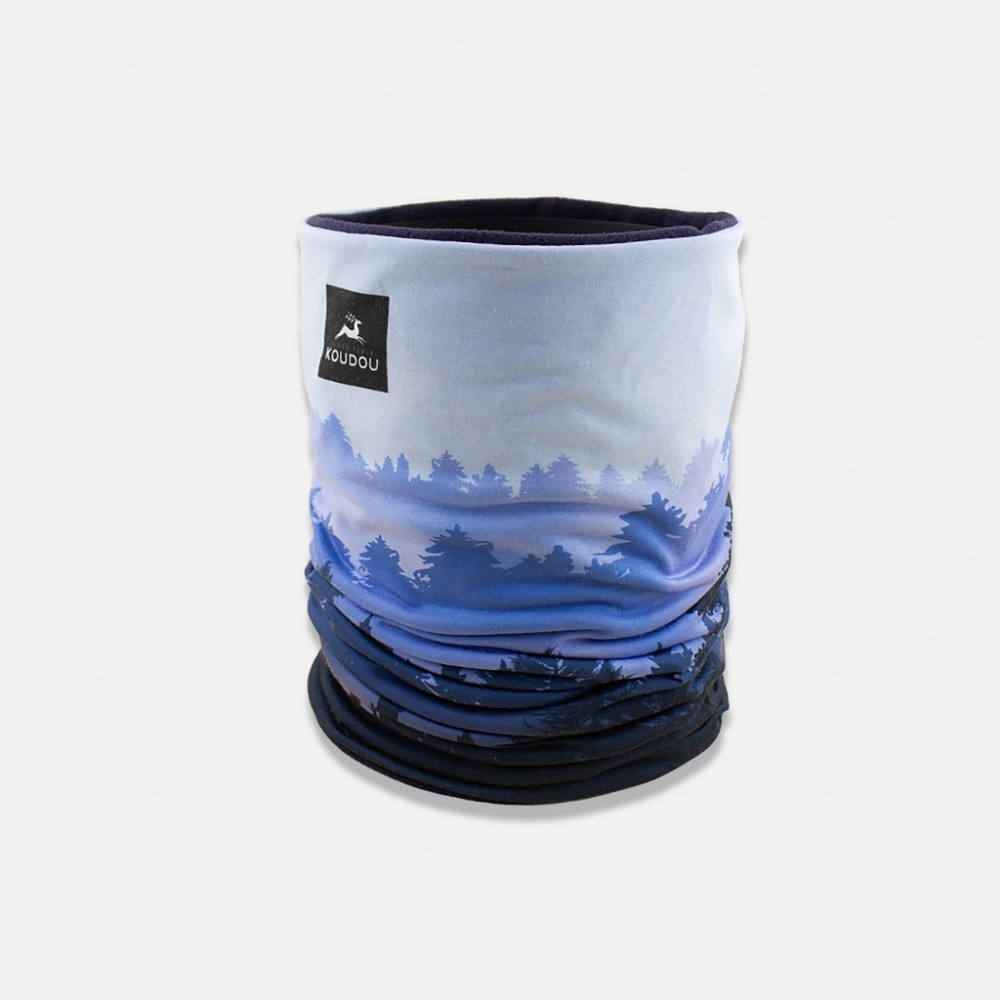 Tour de cou technique en polyester thermo régulant motif foret bleue et polaire marine. Sa doublure polaire vous apportera un confort thermique et une régulation thermique pour les activités les plus extrêmes