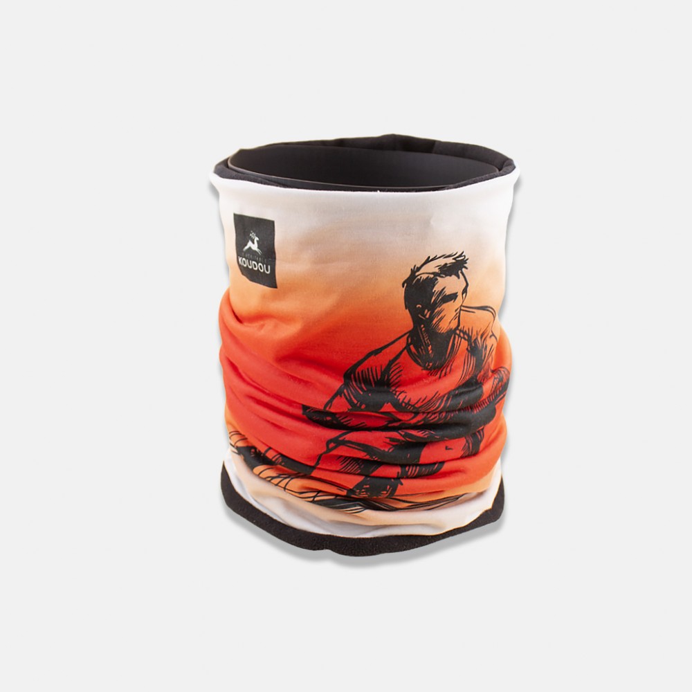 Tour de cou technique en polyester thermo régulant motif rugby sur fond rouge et polaire noire. Sa doublure polaire vous apportera un confort thermique et une régulation thermique pour les activités les plus extrêmes