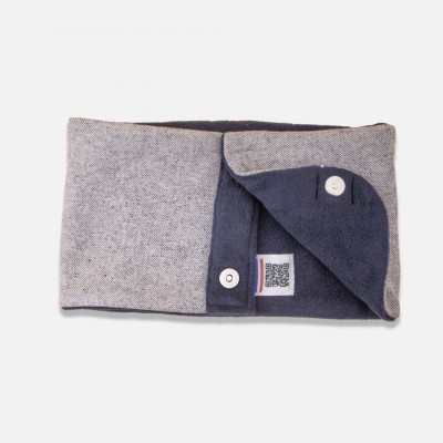 Tour de cou en tissu effet jean blan et bleu marine doublé en polaire marine. Nos tours de cou Koudou votre allié pour les périodes fraiches ou froides. Ils vous donneront un look très tendance et garderont votre cou au chaud.