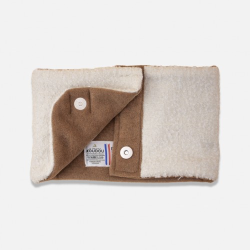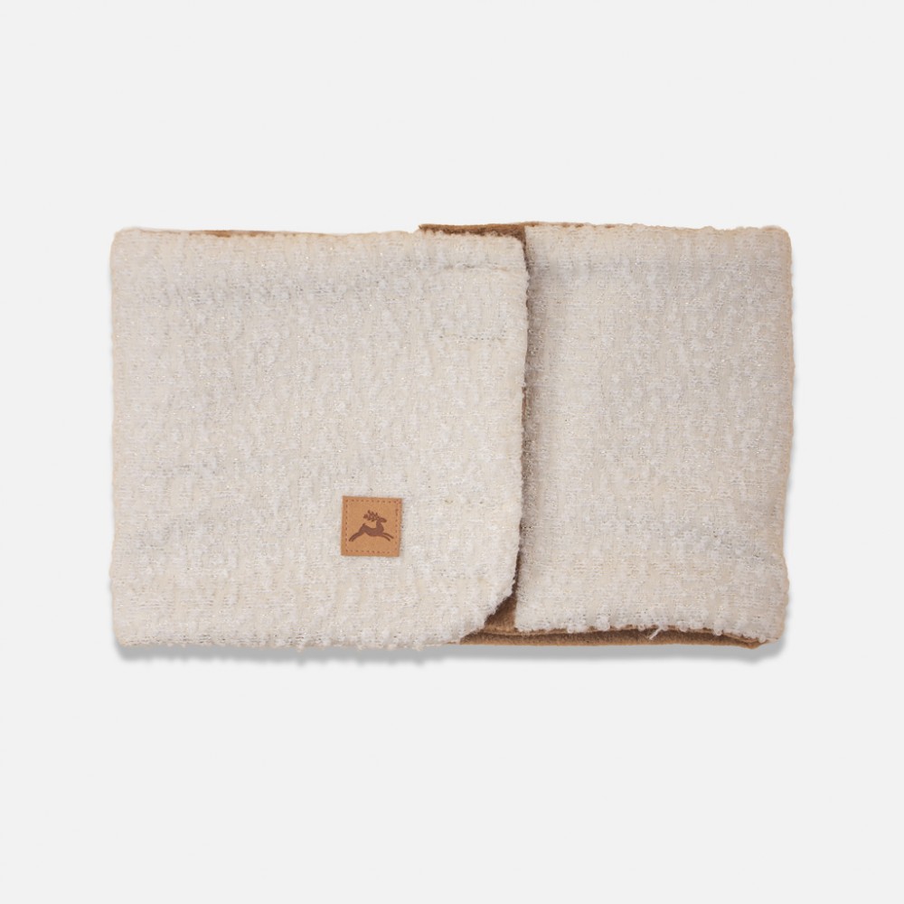 Tour de cou en tissu bouclé écru et lurex doublé polaire tabac. Ce tour de cou Koudou sera votre allié idéal pour les périodes fraiches et froides. Il vous donnera un look très tendance et gardera votre cou au chaud.